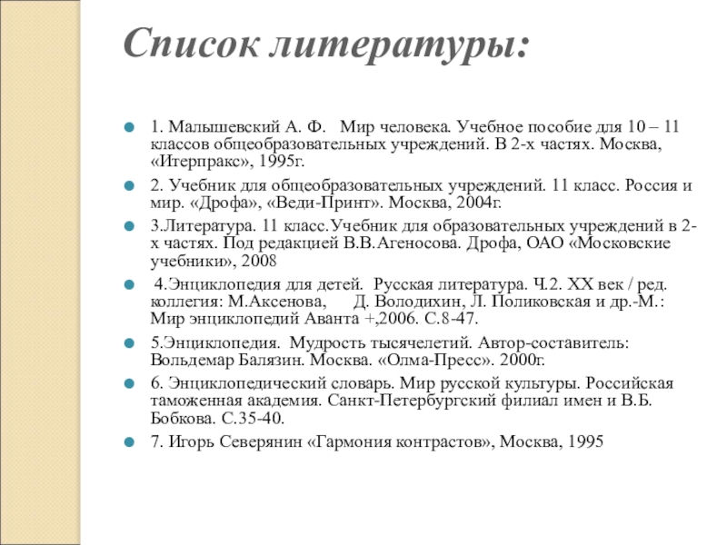 1. Малышевский А. Ф. Мир человека. Учебное пособие для