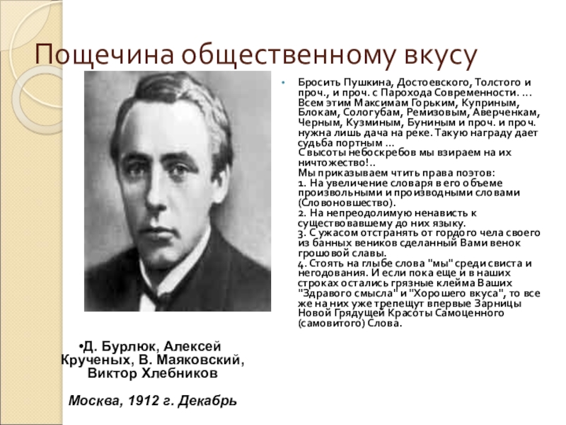 Д. Бурлюк, Алексей Крученых, В. Маяковский, Виктор Хлебников