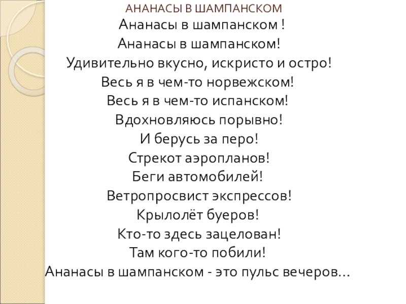 Парохода Современности. ...Всем этим Максимам Горьким, Куприным, Блокам, Сологубам, Ремизовым, Аверченкам, Черным, Кузминым, Буниным и проч. и проч. нужна лишь дача на реке. Такую награду дает судьба портным ...