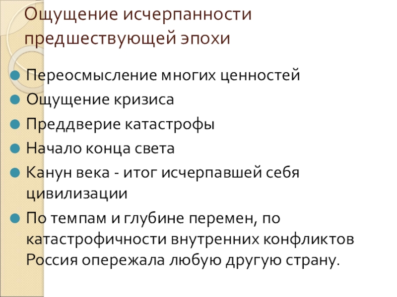 Слайд 5Ощущение исчерпанности предшествующей эпохи