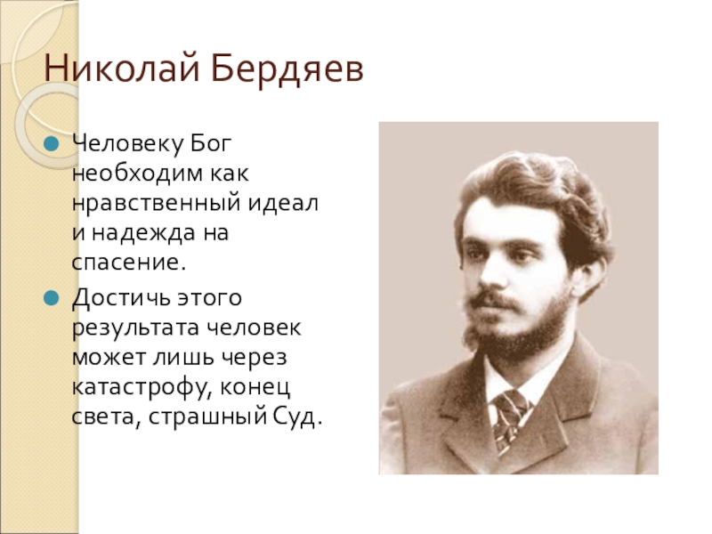 этого результата человек может лишь через катастрофу, конец света, страшный Суд.