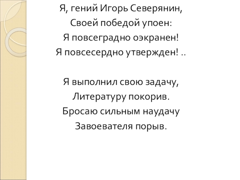 Литература серебряного века явила блестящее созвездие ярких поэтических индивидуальностей, каждый из которых являл собой огромный творческий пласт, обогативший не только русскую, но и мировую поэзию XX века.