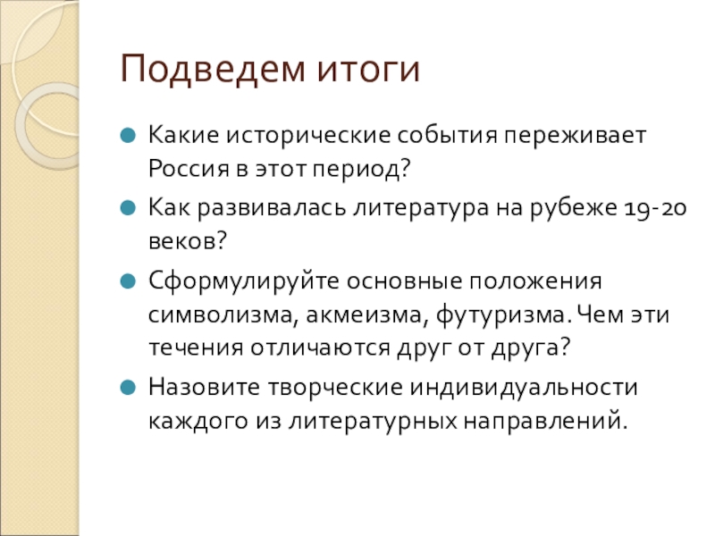 Сформулируйте основные положения символизма, акмеизма, футуризма. Чем эти течения отличаются друг от друга?