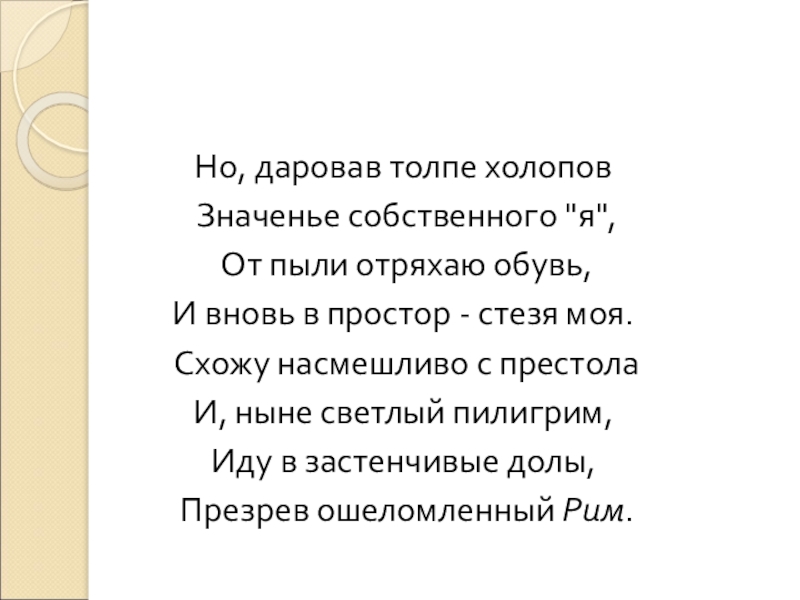 4. Стоять на глыбе слова "мы" среди свиста и негодования. И если пока еще и в наших строках остались грязные клейма Ваших "Здравого смысла" и "Хорошего вкуса", то все же на них уже трепещут впервые Зарницы Новой Грядущей Красоты Самоценного (самовитого) Слова.