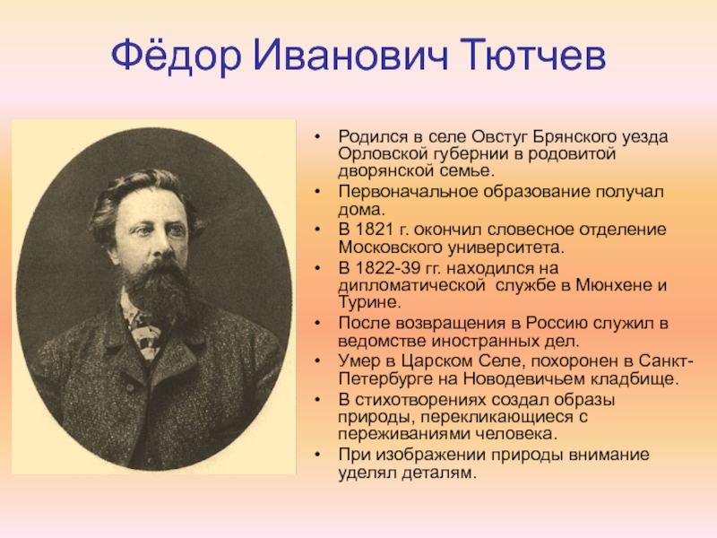 Родился в селе Овстуг Брянского уезда Орловской губернии в