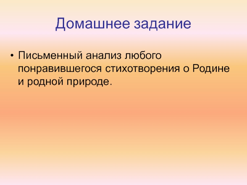 Письменный анализ любого понравившегося стихотворения о Родине и родной природе.