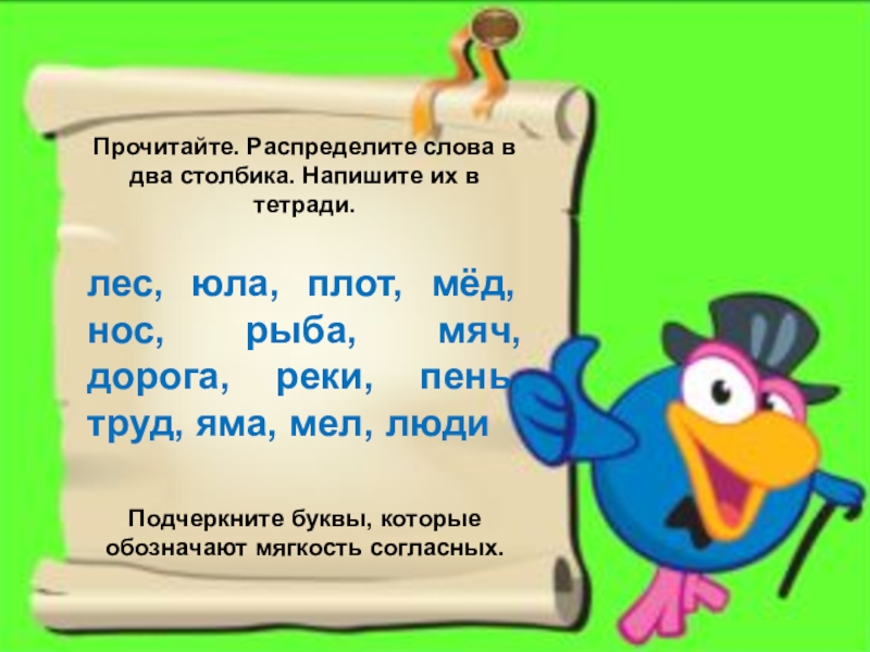 Прочитайте слова, которые начинаются с мягкого согласного звука.
