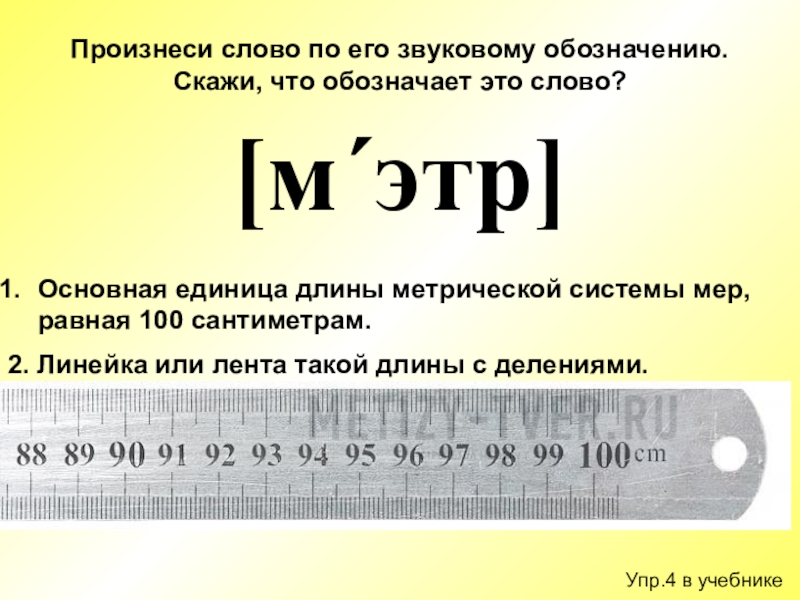 Основная единица длины метрической системы мер, равная 100 сантиметрам.