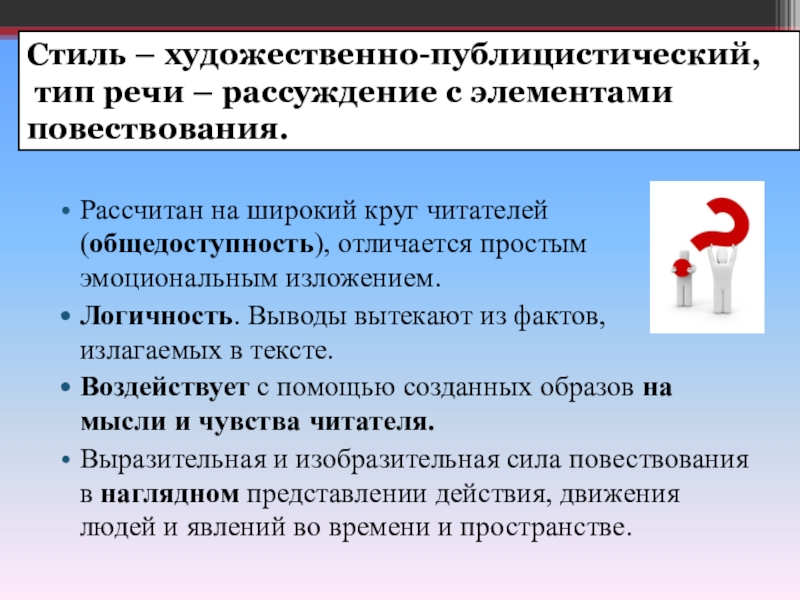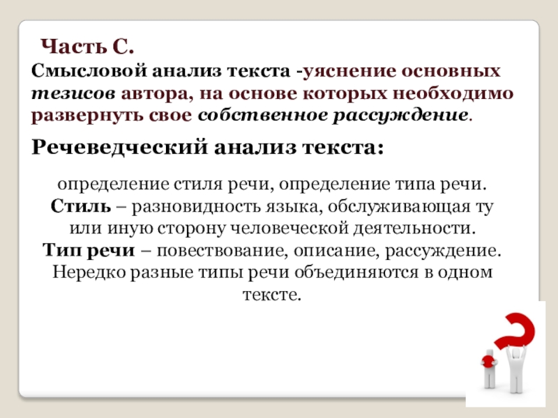 Тип речи – повествование, описание, рассуждение. Нередко разные типы речи объединяются в одном тексте.