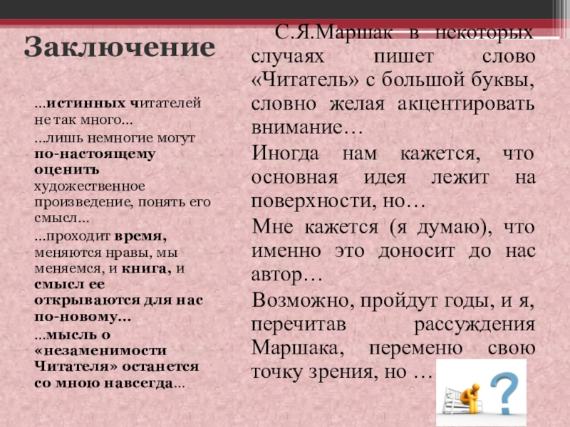 С.Я.Маршак в некоторых случаях пишет слово «Читатель» с большой буквы, словно желая акцентировать внимание…