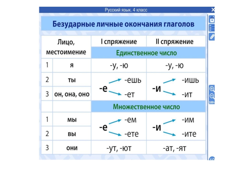 Презентация, доклад на тему Русский язык 4 класс. Тема урока: Безударные личные окончания глаголов