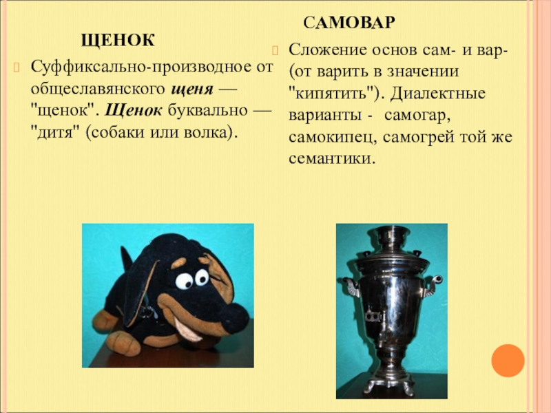 "щенок". Щенок буквально — "дитя" (собаки или волка).