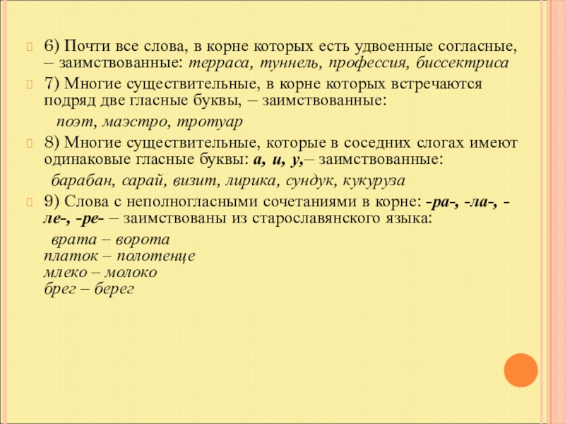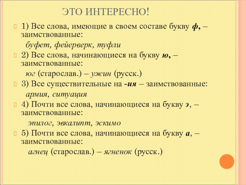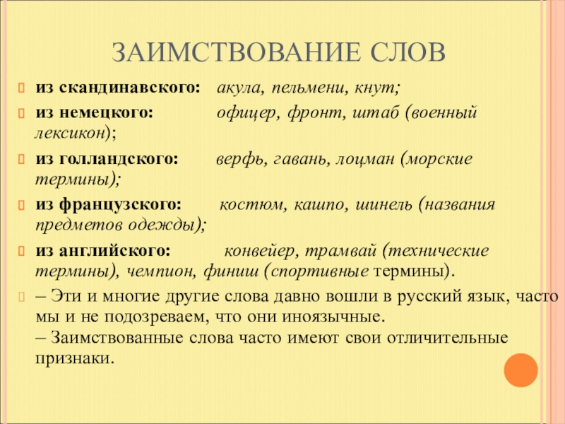 – Заимствованные слова часто имеют свои отличительные признаки.
