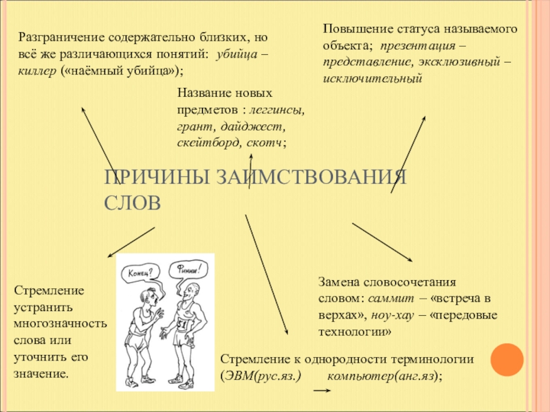 Слайд 13ПРИЧИНЫ ЗАИМСТВОВАНИЯ СЛОВ