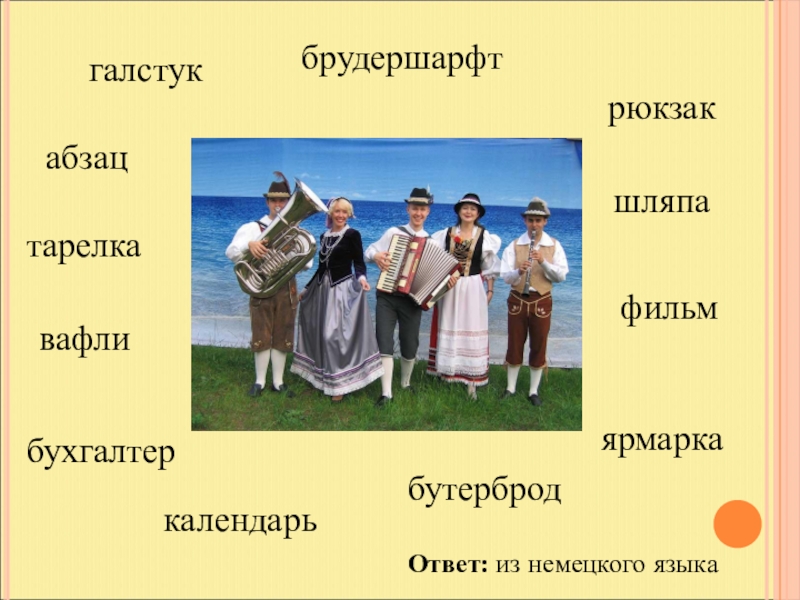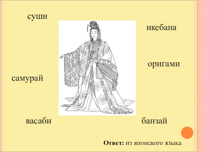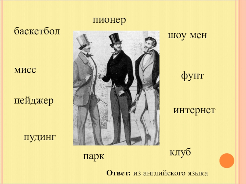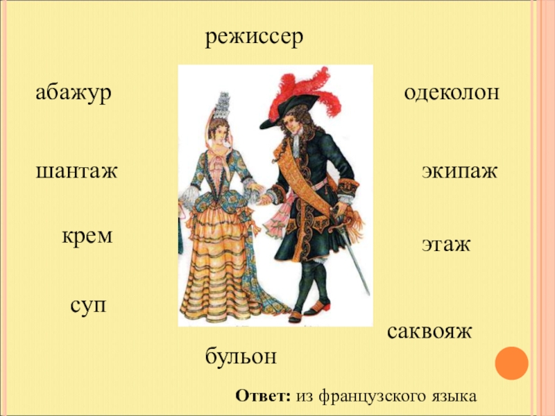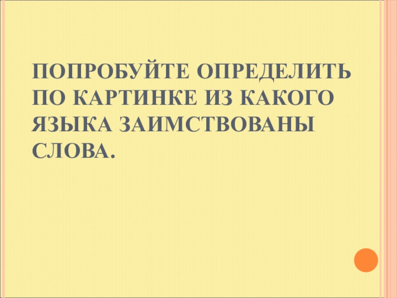Слайд 19ПОПРОБУЙТЕ ОПРЕДЕЛИТЬ ПО КАРТИНКЕ ИЗ КАКОГО ЯЗЫКА ЗАИМСТВОВАНЫ СЛОВА.