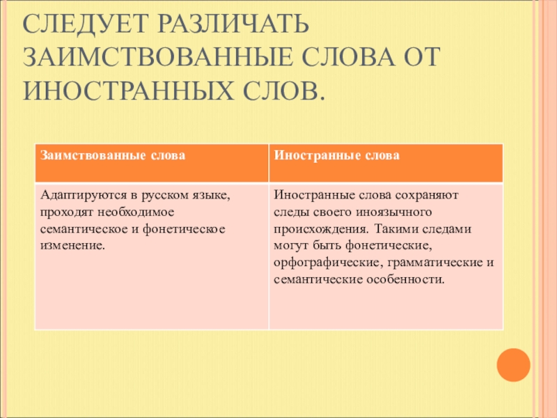 Слайд 12СЛЕДУЕТ РАЗЛИЧАТЬ ЗАИМСТВОВАННЫЕ СЛОВА ОТ ИНОСТРАННЫХ СЛОВ.