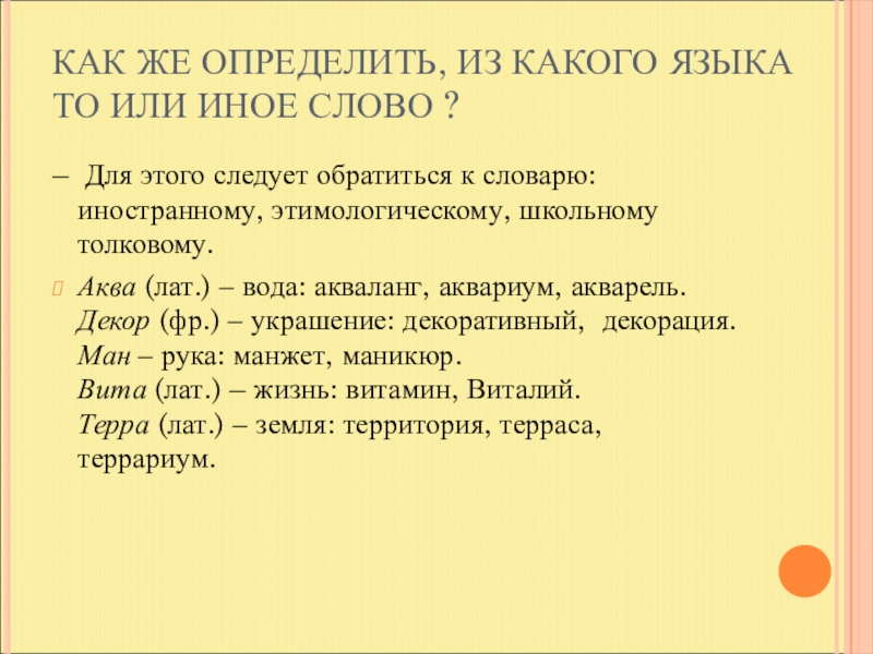 Слайд 18КАК ЖЕ ОПРЕДЕЛИТЬ, ИЗ КАКОГО ЯЗЫКА ТО ИЛИ ИНОЕ СЛОВО ?