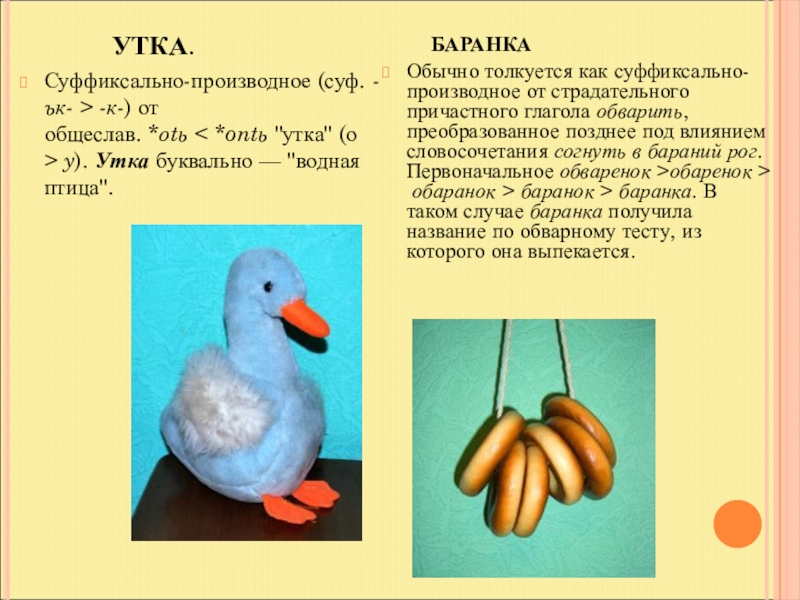 Обычно толкуется как суффиксально-производное от страдательного причастного глагола обварить, преобразованное позднее под влиянием словосочетания согнуть в бараний рог. Первоначальное обваренок >обаренок > обаранок > баранок > баранка. В таком случае баранка получила название по обварному тесту, из которого она выпекается.