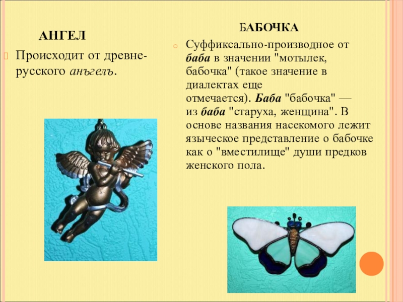 баба в значении "мотылек, бабочка" (такое значение в диалектах еще отмечается). Баба "бабочка" — из баба "старуха, женщина". В основе названия насекомого лежит языческое представление о бабочке как о "вместилище" души предков женского пола.