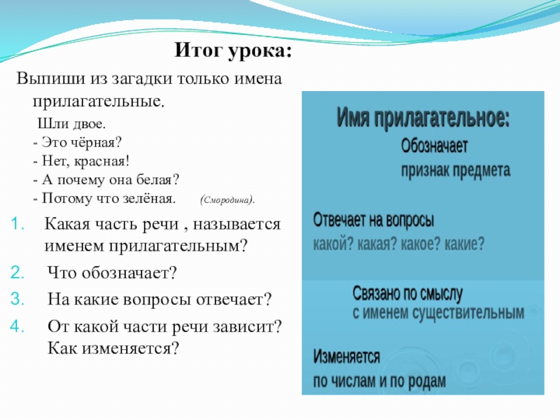 по смыслу, называет признак предмета.