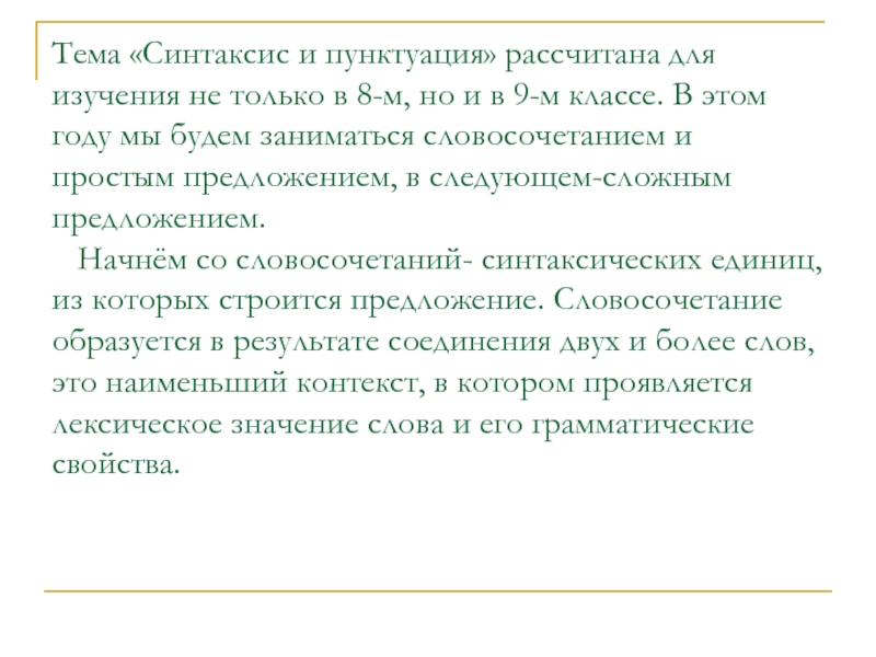 но и в 9-м классе. В этом году мы будем заниматься словосочетанием и простым предложением, в следующем-сложным предложением.