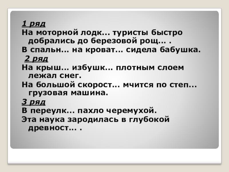 На моторной лодк... туристы быстро добрались до березовой рощ... .