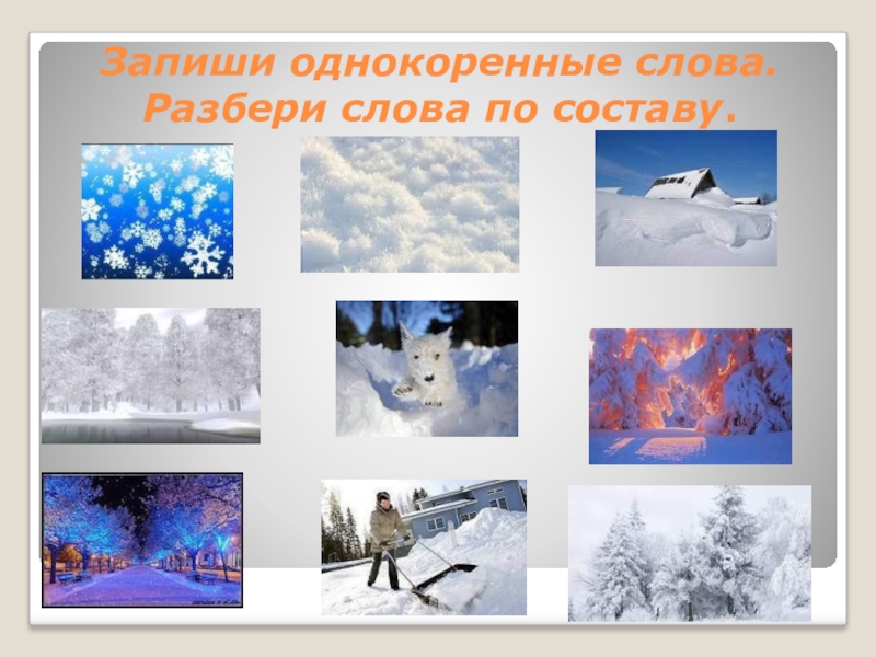 Слайд 3Запиши однокоренные слова.Разбери слова по составу.
