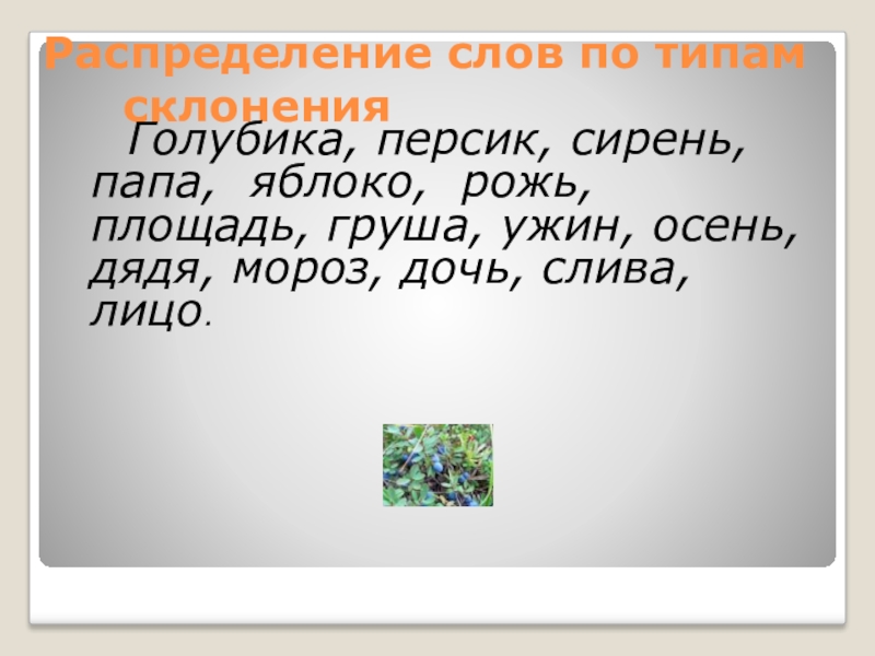папа, яблоко, рожь, площадь, груша, ужин, осень, дядя, мороз, дочь, слива, лицо.