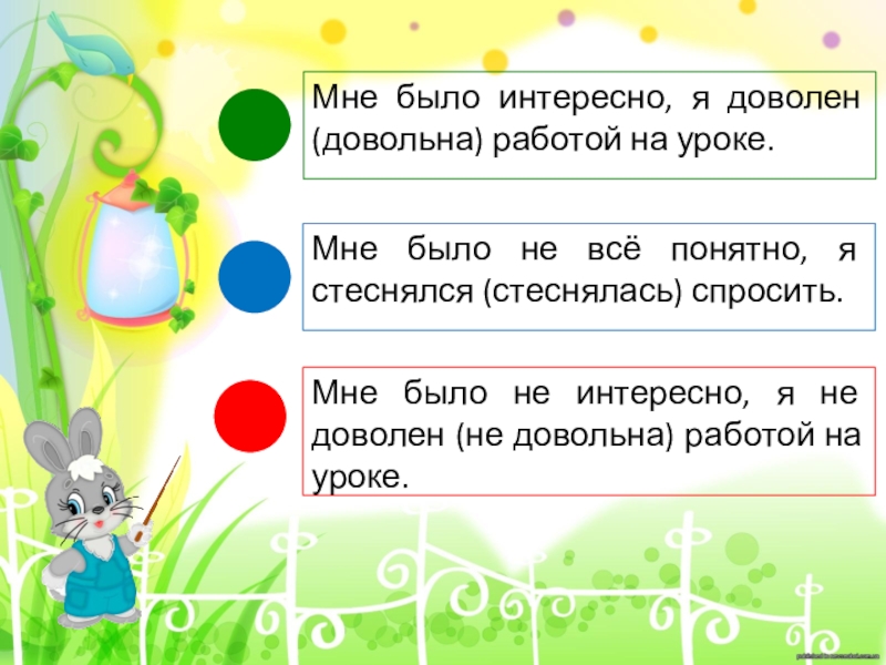 Мне было не интересно, я не доволен (не довольна) работой на уроке.