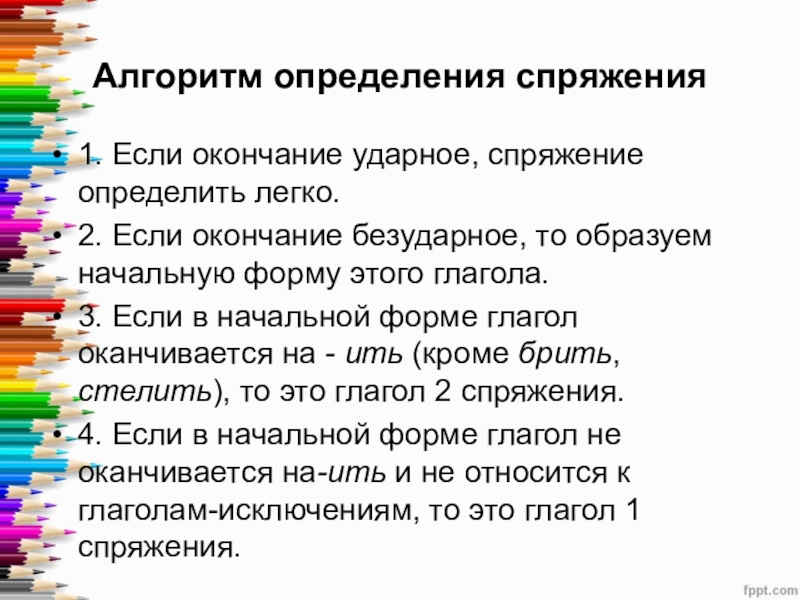 4. Если в начальной форме глагол не оканчивается на-ить и не относится к глаголам-исключениям, то это глагол 1 спряжения.