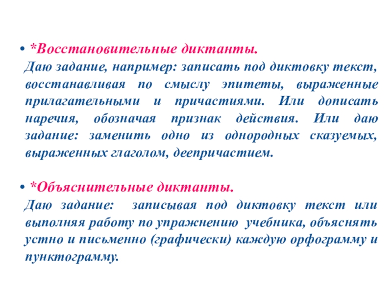 Слайд 9*На уроках русского языка я использую различные виды самостоятель-ной работы.
