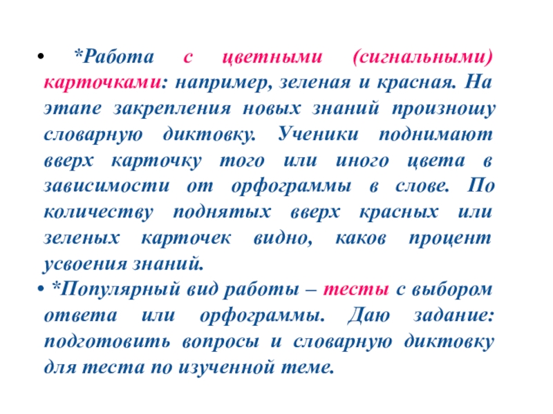Слайд 13 *Работа с цветными (сигнальными) карточками: например, зеленая и красная. На