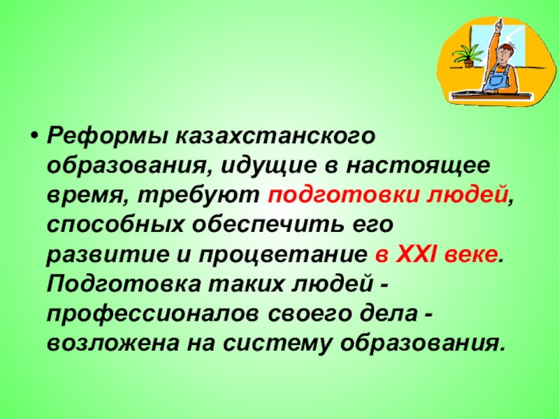 Реформы казахстанского образования, идущие в настоящее время, требуют подготовки людей, способных