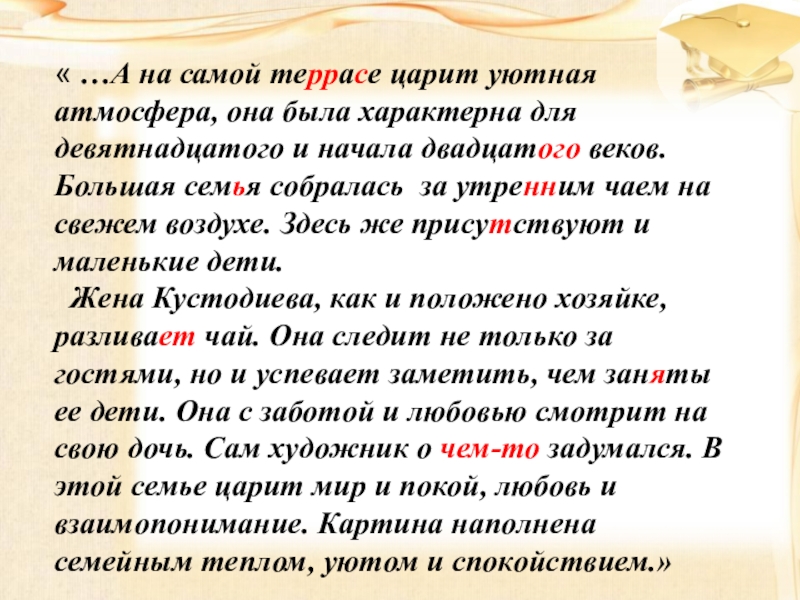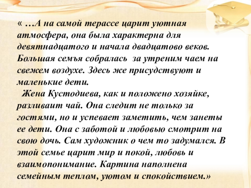 Слайд 42« …А на самой терассе царит уютная атмосфера, она была характерна для