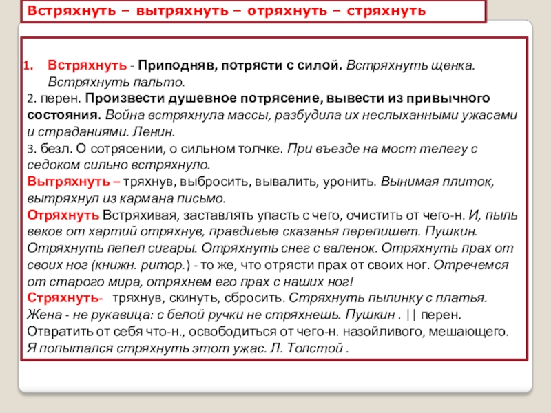 Слайд 5Встряхнуть – вытряхнуть – отряхнуть – стряхнуть