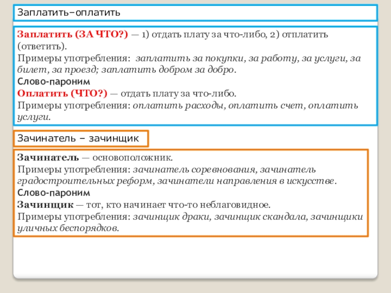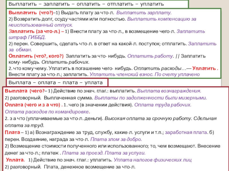 Слайд 9Выплатить – заплатить – оплатить – отплатить – уплатить