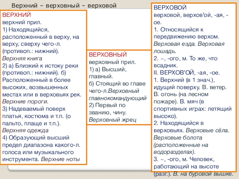II. ВЕРХОВ′ОЙ, -ая, -ое.