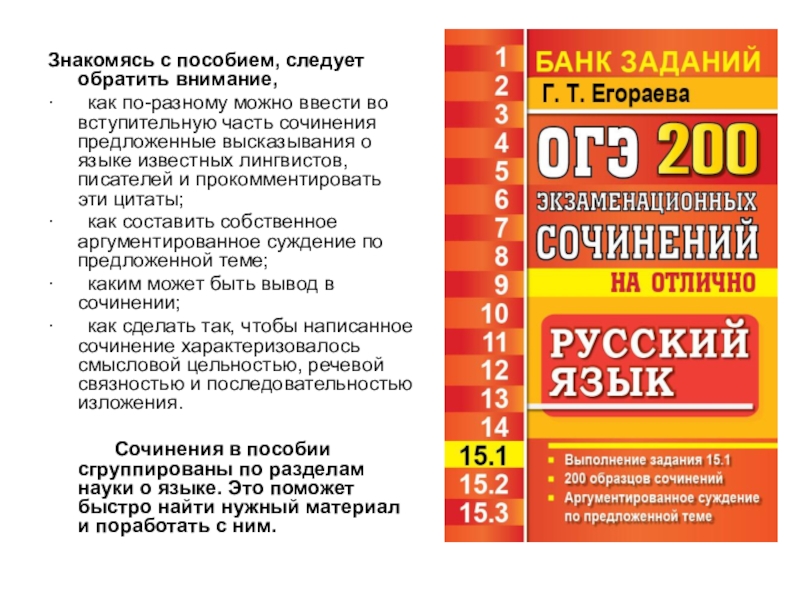 Сочинения в пособии сгруппированы по разделам науки о языке. Это поможет быстро найти нужный материал и поработать с ним.