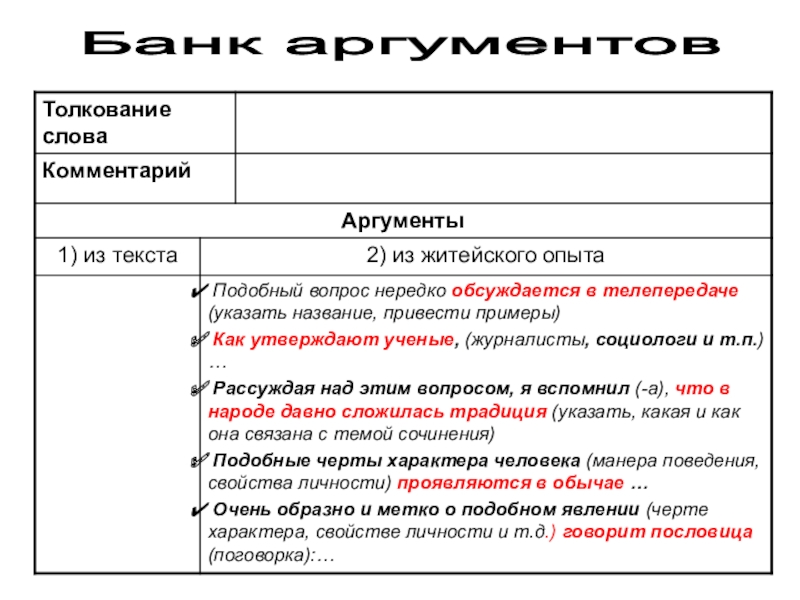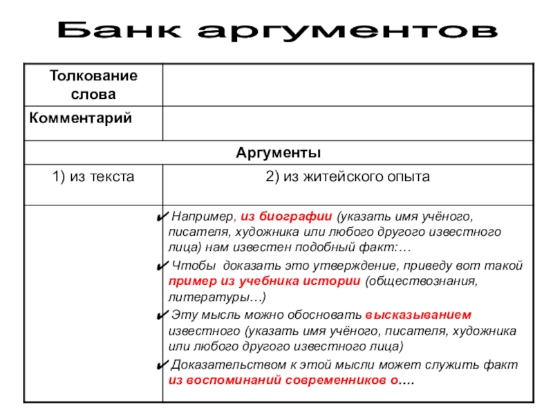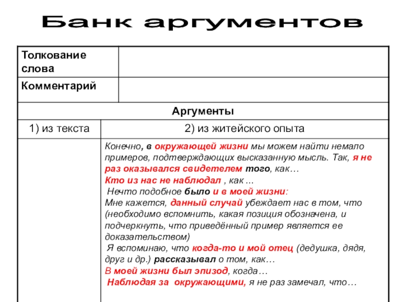 ∙ как составить собственное аргументированное суждение по предложенной теме;