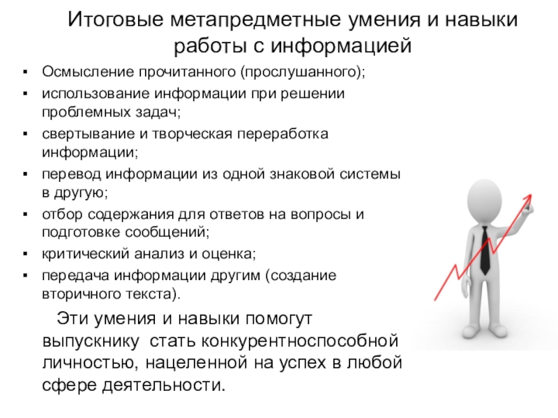 Слайд 95Итоговые метапредметные умения и навыки работы с информацией