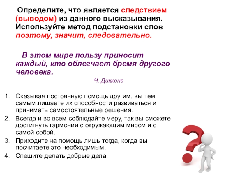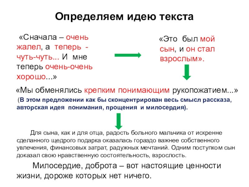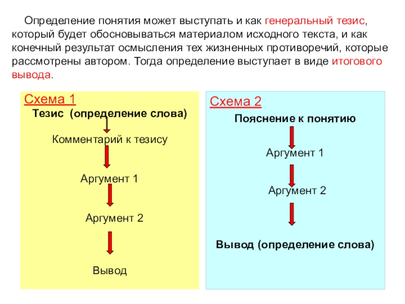 будет обосновываться материалом исходного текста, и как конечный результат осмысления тех жизненных противоречий, которые рассмотрены автором. Тогда определение выступает в виде итогового вывода.