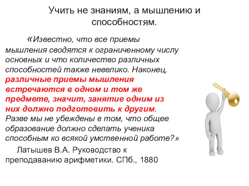Слайд 4Учить не знаниям, а мышлению и способностям.