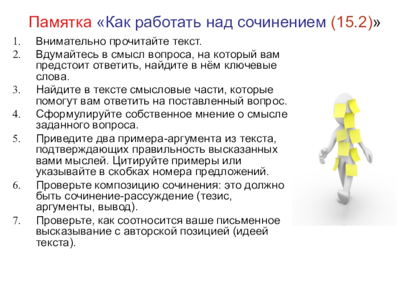 ∙ как сделать так, чтобы написанное сочинение характеризовалось смысловой цельностью, речевой связностью и последовательностью изложения.