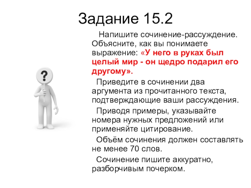 15.2 Напишите сочинение-рассуждение. Объясните, как вы понимаете выражение: «….».