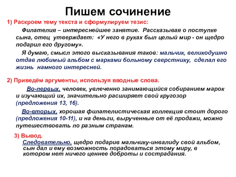 Формулировка темы сочинения -прообраз, компрессия будущего текста.