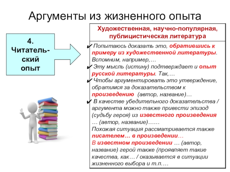 умение использовать информацию, содержащуюся в прочитанном тексте, в качестве аргумента