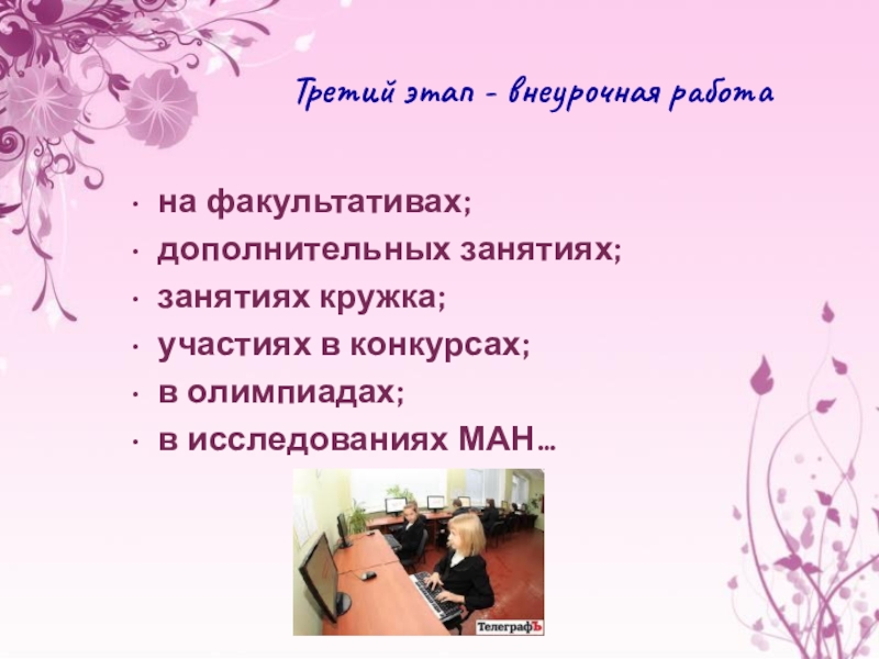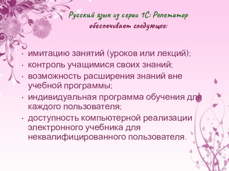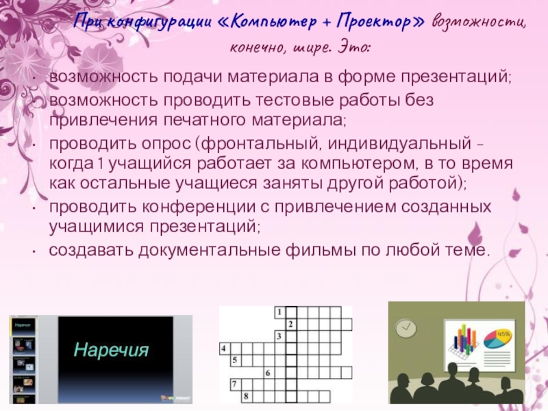 Слайд 25При конфигурации «Компьютер + Проектор» возможности, конечно, шире. Это:
