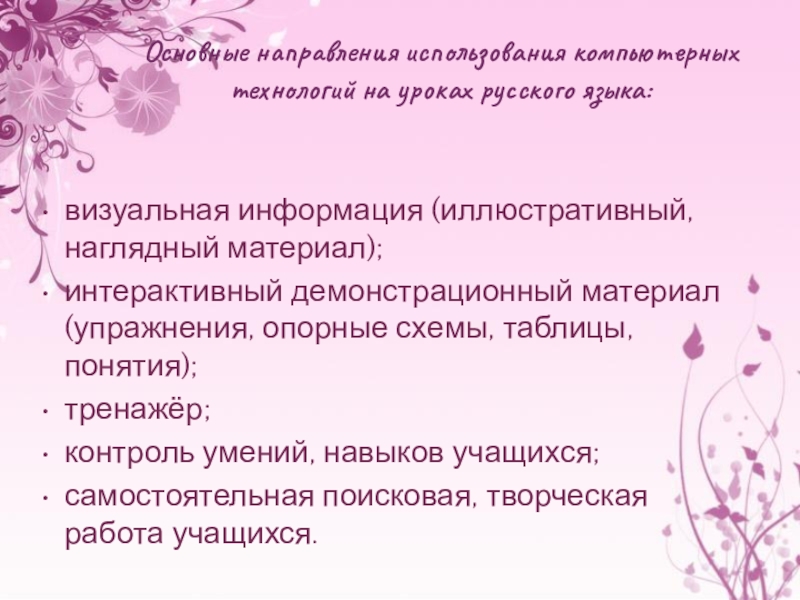 Слайд 8Основные направления использования компьютерных технологий на уроках русского языка: