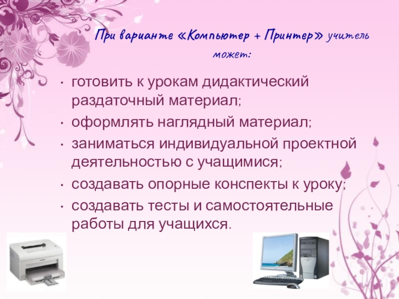 Слайд 24При варианте «Компьютер + Принтер» учитель может: