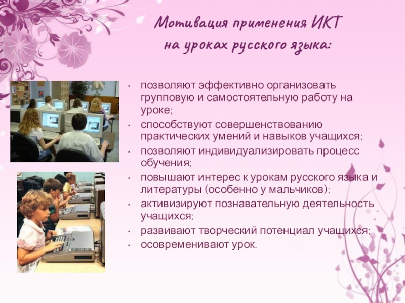 Слайд 23Формы работы с компьютером на уроках русского языка